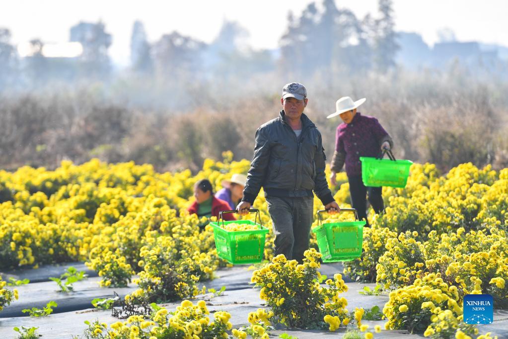 - Villagers harvest chrysanthemums in Qianjia Village, central China's Hunan