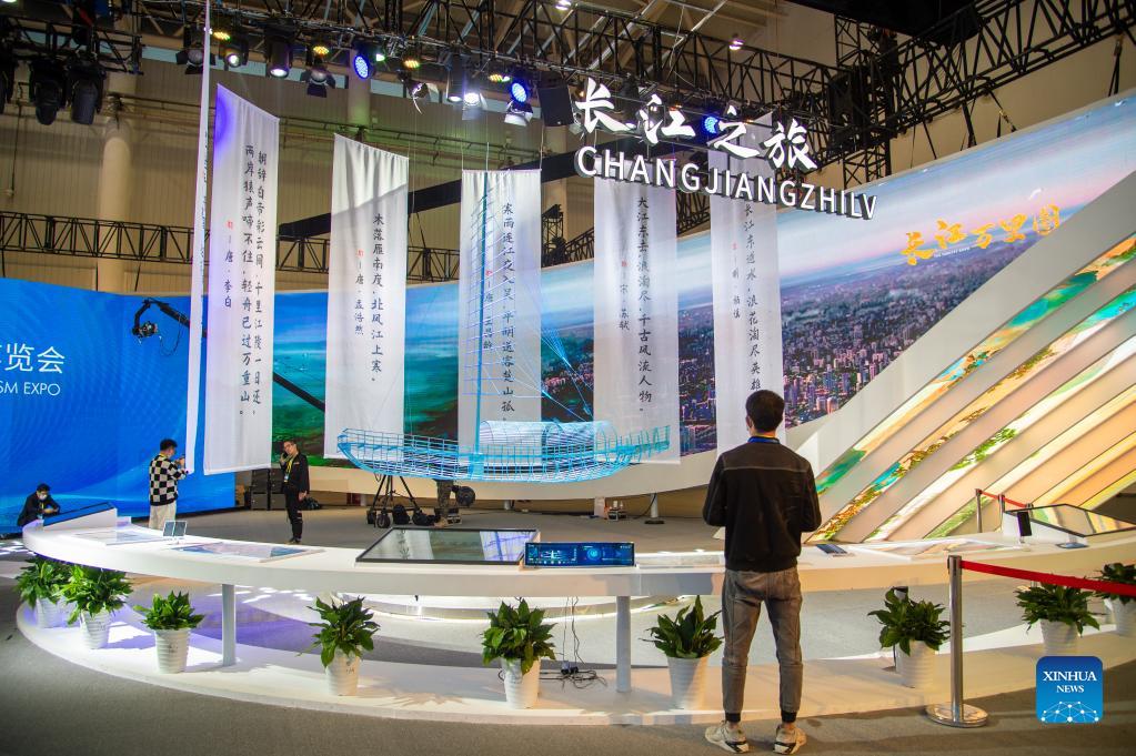 People visit the China (Wuhan) Culture and Tourism Expo in Wuhan, central China's Hubei Province, Nov. 26, 2021. The first China (Wuhan) Culture and Tourism Expo kicked off Friday in Wuhan, capital of central China's Hubei Province. Themed "Beautiful China, Happy Life," the three-day event has attracted industry and government representatives from 29 domestic provincial-level regions, 13 foreign countries and two international organizations, according to the organizers. (Xinhua/Wu Zhizun)