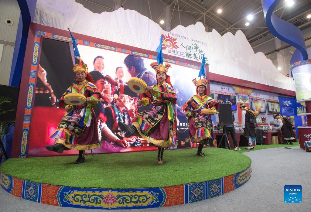Performers dance at the China (Wuhan) Culture and Tourism Expo in Wuhan, central China's Hubei Province, Nov. 26, 2021. The first China (Wuhan) Culture and Tourism Expo kicked off Friday in Wuhan, capital of central China's Hubei Province. Themed "Beautiful China, Happy Life," the three-day event has attracted industry and government representatives from 29 domestic provincial-level regions, 13 foreign countries and two international organizations, according to the organizers. (Xinhua/Xiao Yijiu)