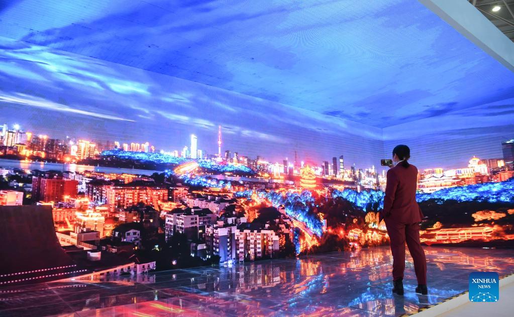 A visitor watches a panoramic video at the China (Wuhan) Culture and Tourism Expo in Wuhan, central China's Hubei Province, Nov. 26, 2021. The first China (Wuhan) Culture and Tourism Expo kicked off Friday in Wuhan, capital of central China's Hubei Province. Themed "Beautiful China, Happy Life," the three-day event has attracted industry and government representatives from 29 domestic provincial-level regions, 13 foreign countries and two international organizations, according to the organizers. (Xinhua/Cheng Min)