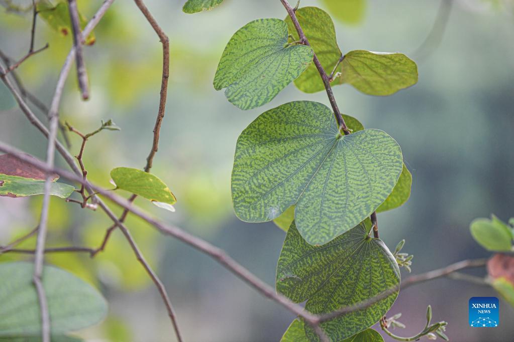 Photo taken on Nov. 17, 2021 shows the Bauhinia purpurea in Hainan Tropical Botanical Garden in Danzhou City, south China's Hainan Province. Hainan Tropical Botanical Garden, located in Danzhou of south China's Hainan, was founded in 1958 and is now affiliated with Chinese Academy of Tropical Agricultural Sciences. The garden, with over 2,600 kinds of tropical and subtropical plants collected from more than 40 countries and regions, is a treasure house of tropical plant resources including flowers, fruit trees, medicinal plants and economic plants, etc. (Xinhua/Pu Xiaoxu)