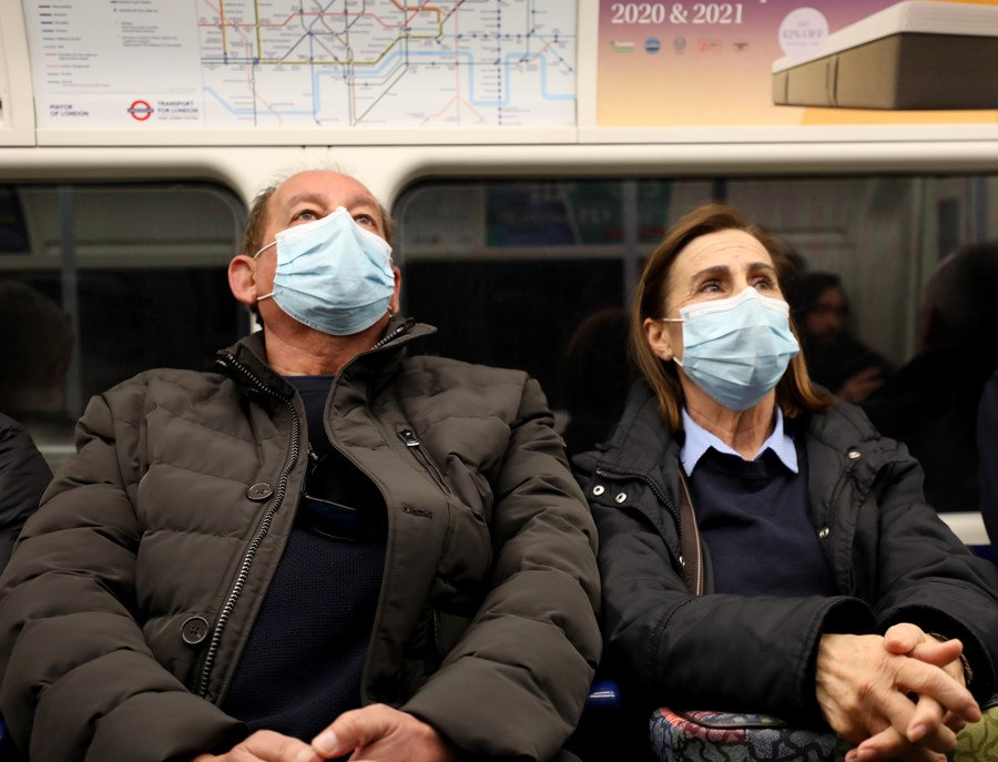 People wearing masks ride the London Tube in London, Britain, Nov. 25, 2021. More than 10 million coronavirus cases have been recorded in Britain since the start of the COVID-19 pandemic, according to official figures released Thursday. (Xinhua/Li Ying)