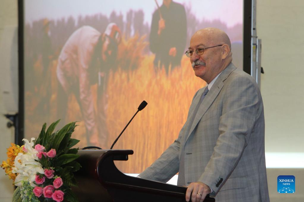 File photo taken in 2014 shows Frank Hawke speaking during an event commemorating the 35th anniversary of exchanges between Chinese and American scholars in Beijing, capital of China. (Xinhua)