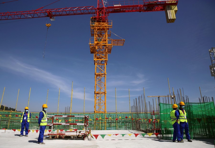 Photo taken on Nov. 26, 2021 shows the construction site of the Headquarters Building Phase I Project of the Africa Centers for Disease Control and Prevention (Africa CDC) in Addis Ababa, Ethiopia. The African Union (AU) Commission marked structural completion of the main building of the China-aided future headquarters of the Africa CDC.(Xinhua/Wang Ping)