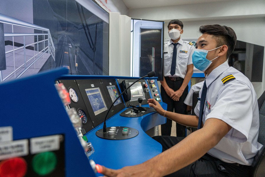 Preeyaporn and her classmates are operating a train driver simulator, the centerpiece of the Lu Ban High-Speed Railway Institute, which was established in Banphai Industrial and Community Education College in Thailand's northeastern province of Khon Kaen, in a collaborative effort with the WRC in China.