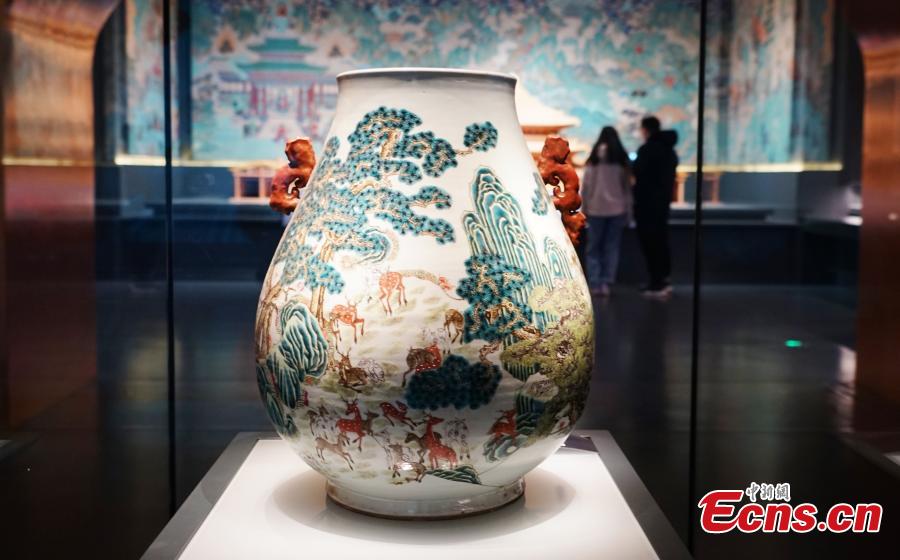 Porcelain featuring 100 deer patterns is displayed at the Qinghai Province Museum in Xining, northwest China's Qinghai Province, Nov. 29, 2021. (Photo: China News Service/Ma Mingyan)