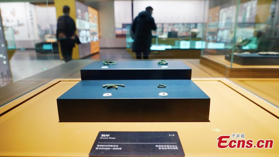 Copper rings are on display at the Qinghai Province Museum in Xining, northwest China's Qinghai Province, Nov. 29, 2021. (Photo: China News Service/Ma Mingyan)