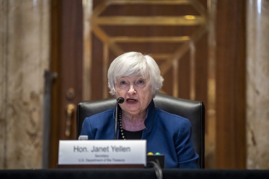 U.S. Treasury Secretary Janet Yellen testifies during a Senate Appropriations Subcommittee hearing of Fiscal Year 2022 Budget for the Department of the Treasury on Capitol Hill in Washington, D.C., the United States, on June 23, 2021. (Shawn Thew/Pool via Xinhua)