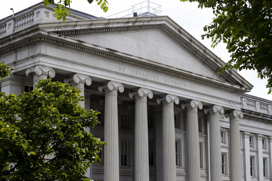 Photo taken on May 21, 2020 shows the U.S. Treasury Department building in Washington D.C., the United States. (Xinhua/Ting Shen)