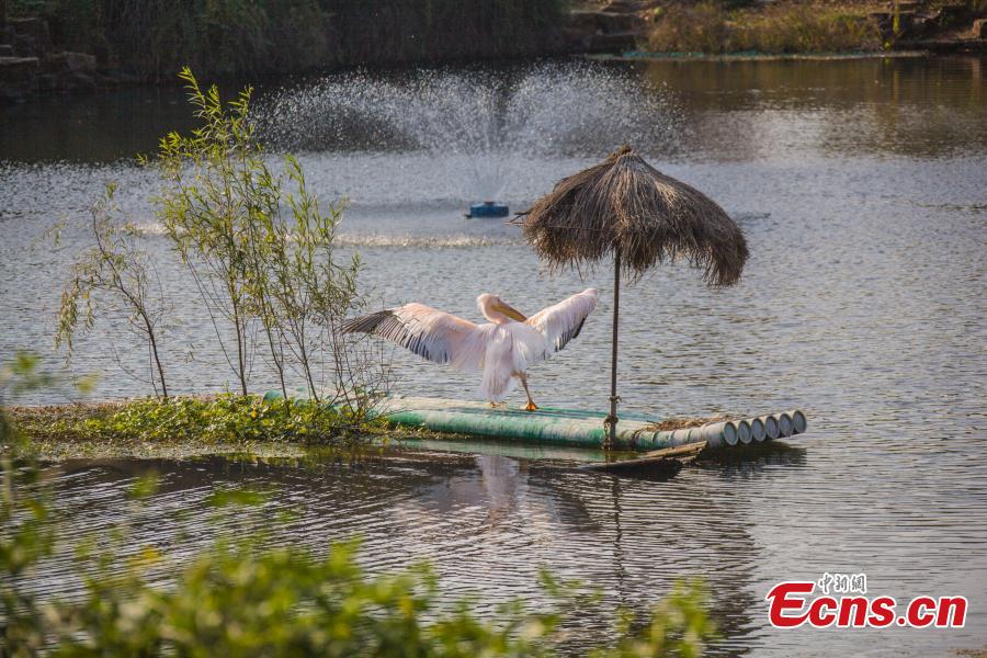 Eastern white pelicans are seen at the Hongshan Forest Zoo in Nanjing, capital of east China's Jiangsu Province, Nov 30, 2021. (Photo: China News Service/Sun Zhongnan)