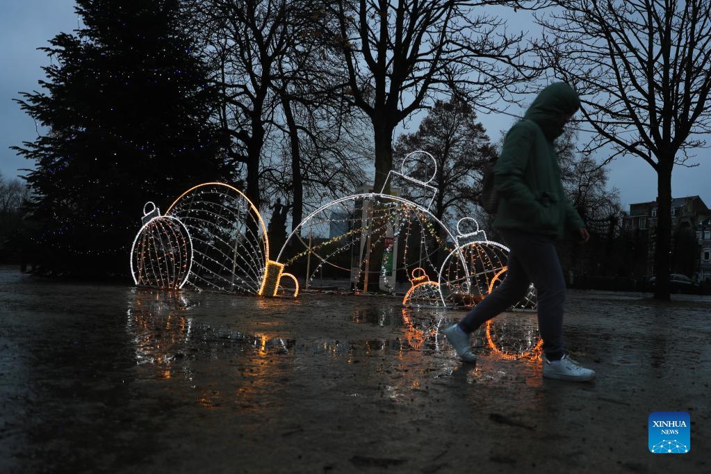 A pedestrian passes the lighting for Christmas in Brussels, Belgium, Nov. 30, 2021. Omicron, a new COVID-19 variant, has been detected in a growing number of countries and regions worldwide, prompting governments to tighten their restrictions and impose new travel bans. (Xinhua/Zheng Huansong)