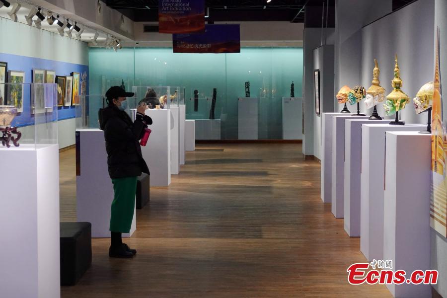 People view exhibits at the 7th Silk Road International Arts Festival, Xi'an, Shaanxi Province, Dec.1, 2021. (Photo: China News Service/Zhang Yuan)