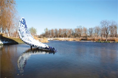 Another artwork piece designed in the shape of a boat seeks to express traditional culture in a modern way. The 9-meter-long piece, co-produced by Zhang Mian and Zhi Min, two sculptors with the Chinese National Academy of Arts, has been placed along a river inside the Central Green Forest Park in Beijing’s Tongzhou district.