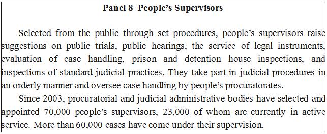 They exercise democratic oversight – they elect village and urban community affairs oversight committees to supervise the handling of their community affairs and guarantee information disclosure.