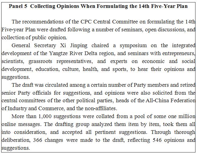 At the beginning of the decision-making process, deputies to people's congresses and CPPCC members make suggestions and proposals, and citizens, legal persons, and other organizations can file written suggestions. During the decision-making process, opinions and suggestions are collected from all social sectors, and especially from those directly concerned, through formats including seminars, hearings, questionnaires, and field trips.