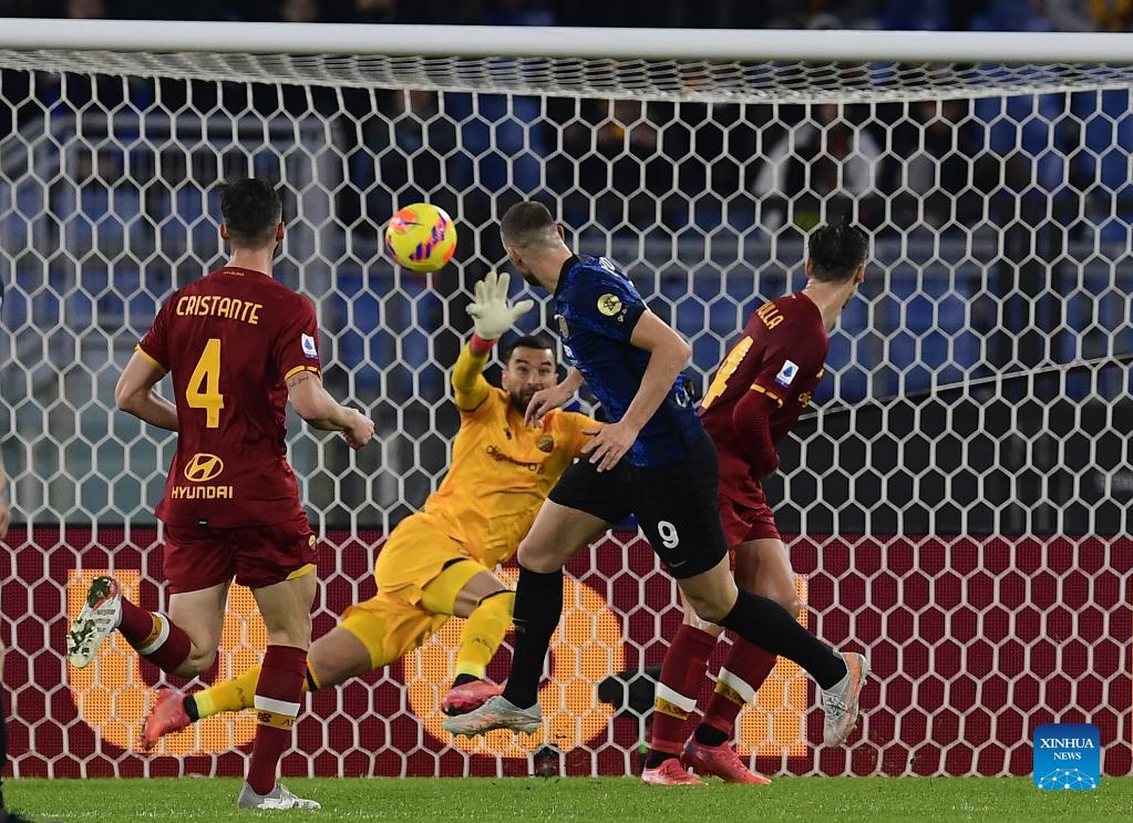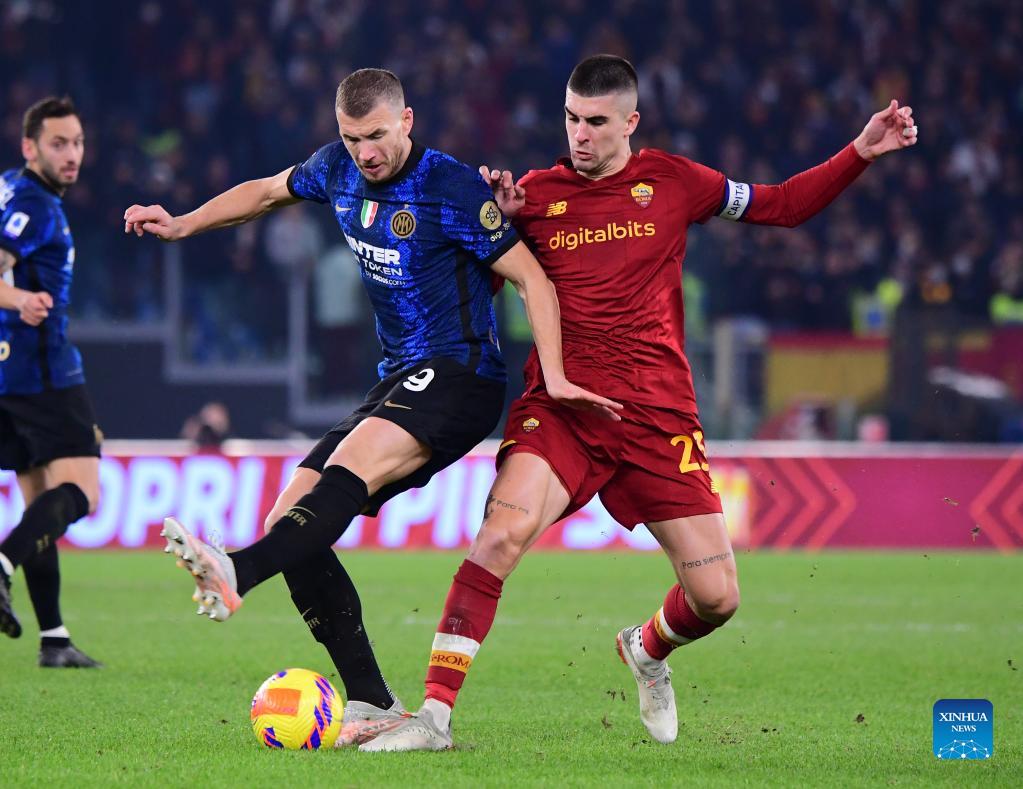 ROME, Dec. 4 (Xinhua) -- The highly-anticipated Serie A fixture between Inter Milan and Roma on Saturday turned out to be one-sided, as the Nerazzurri won 3-0 away including a Hakan Calhanoglu's magic, hammering the capital team led by Inter's former coach Jose Mourinho.