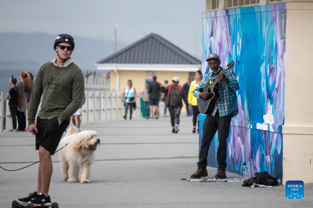 People enjoy leisure time on the seaside in Cape Town, South Africa, Dec. 5, 2021. South Africa has entered the fourth wave of the pandemic with the new variant at the center of the rise in cases, Health Minister Joe Phaahla said at a briefing on Friday. (Xinhua/Lyu Tianran)