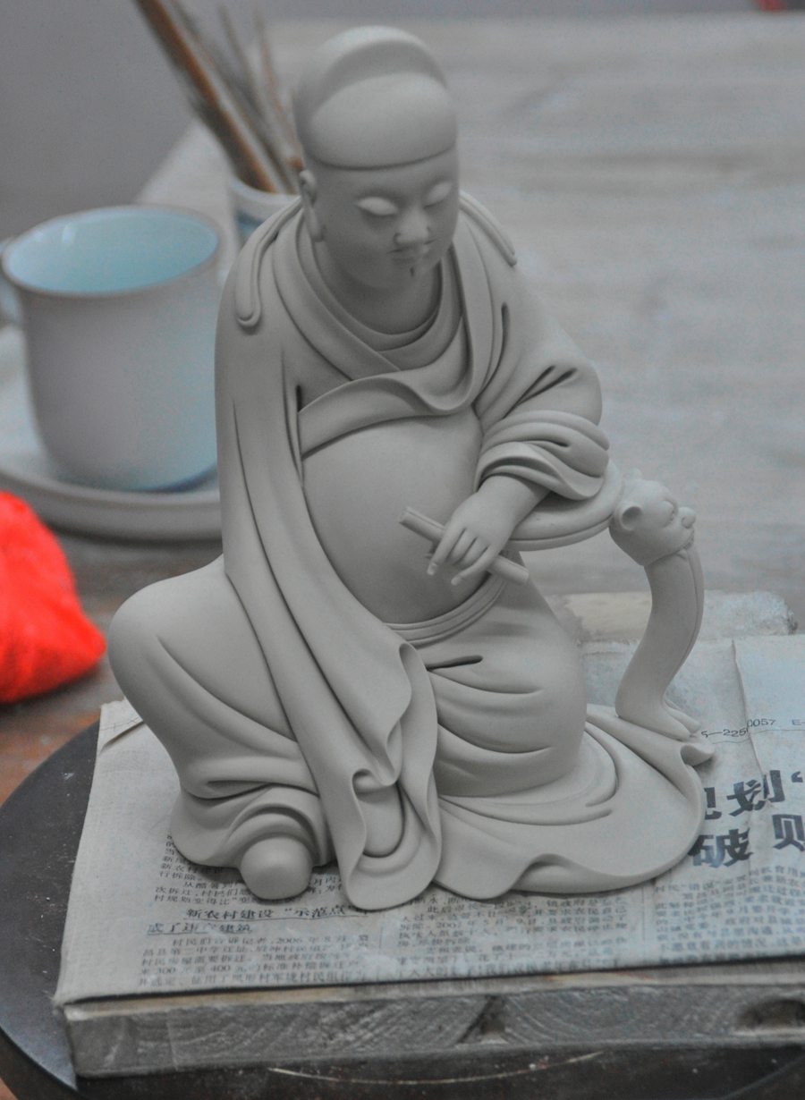 Chen Mingliang, a national inheritor of the Dehua porcelain technique, said porcelain carving combines the skills of stone carving, wood carving, and clay sculpture. According to him, craftsmen usually make greenware directly from high-quality kaolin by hand or apply the technique of slip casting, in which liquid clay is poured into plaster molds and allowed to form a layer, the cast, on its inside walls.