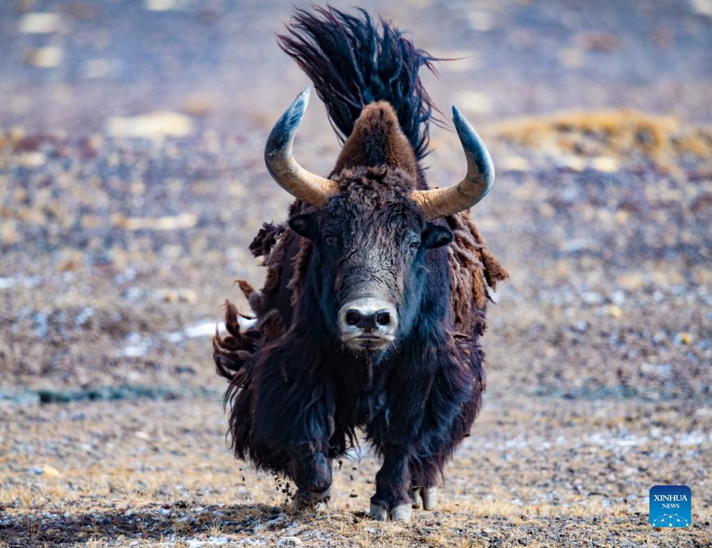 A wild yak is pictured at the Qiangtang National Nature Reserve in southwest China's Tibet Autonomous Region, Sept. 25, 2021. (Xinhua/Purbu Zhaxi)