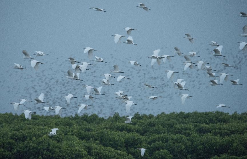 With continuous efforts and progress being made in the protection and restoration of local mangrove forests, the species and populations of wildlife in the nature reserve have been expanding. The number of bird species recorded in the nature reserve has increased from about 180 to more than 200.