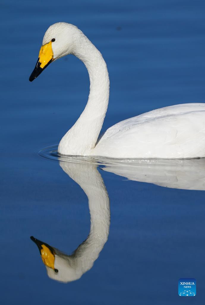 A swan is pictured on the Qingshui river in Miyun District of Beijing, capital of China, Dec. 7, 2021. (Xinhua/Chen Yehua)