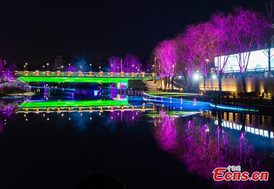 Colorful lights brighten up the Liangma River International Style Waterfront in Chaoyang District, Beijing, capital of China, Dec.7, 2021. (Photo: China News Service/Hou Yu)