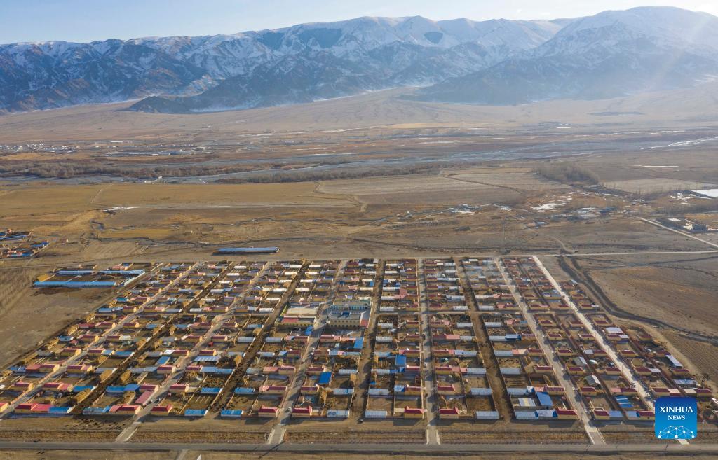 The picture taken on Nov. 25, 2021 shows Torsongan Bullik's hometown Wenquan County, northwest China's Xinjiang Uygur Autonomous Region. Torsongan Bullik is a Xinjiang cross-country skiing athlete. He used to be a cyclist and won several champions. Torsongan Bullik shifted from cycling to cross-country skiing on November 20, 2018. He went for cross-country skiing, because there is a chance to attend the Olympics. There is a huge difference between cycling and cross-country skiing, but the Olympic dream led Xinjiang athlete come over all challenges. He is now well prepared and ready to fight for the championship in 2022 Beijing Olympics. (Xinhua/Hu Huhu)