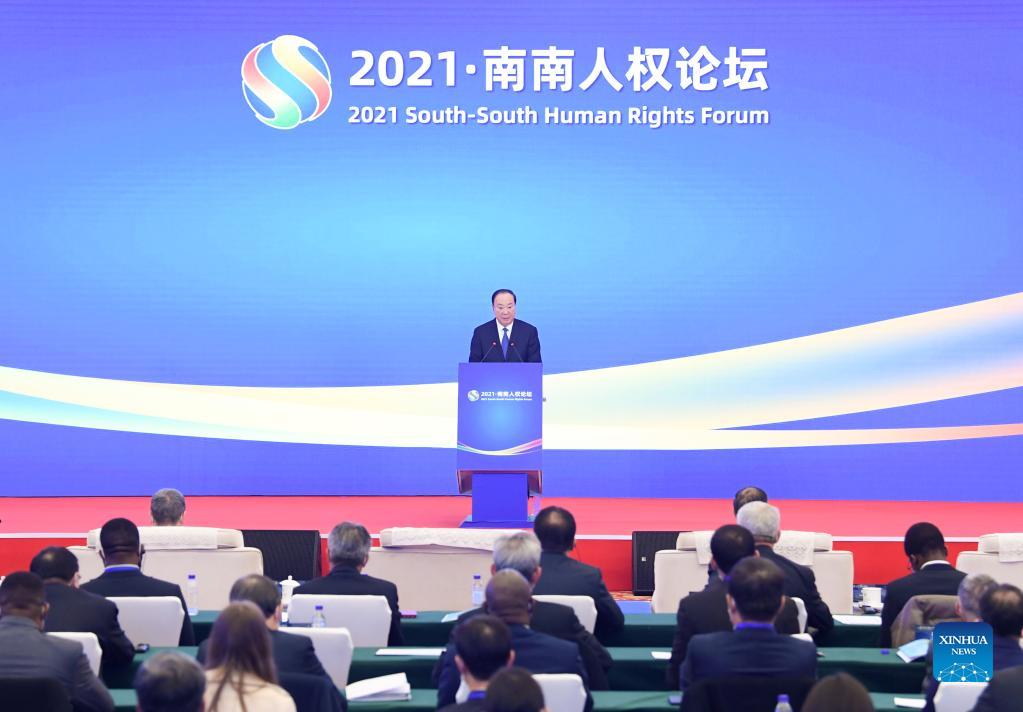 Huang Kunming, a member of the Political Bureau of the CPC Central Committee and head of the Publicity Department of the CPC Central Committee, made the remarks when addressing the opening ceremony of the 2021 South-South Human Rights Forum.
