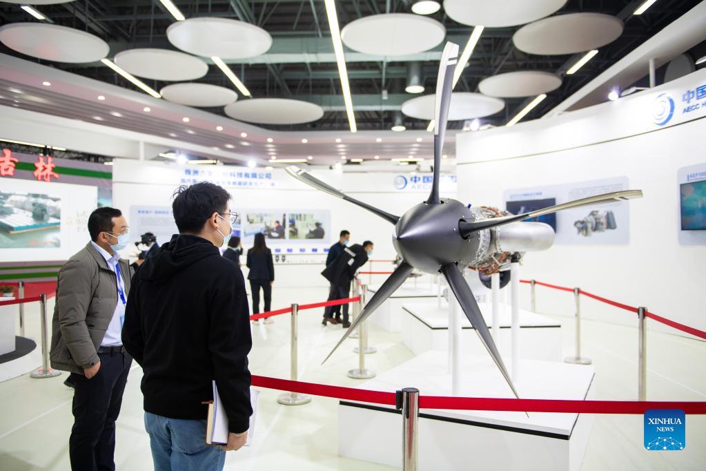 People view the exhibits at China International Rail Transit and Equipment Manufacturing Industry Exposition in Zhuzhou, central China's Hunan Province, Dec. 8, 2021. The expo kicked off here on Wednesday. (Xinhua/Chen Sihan)