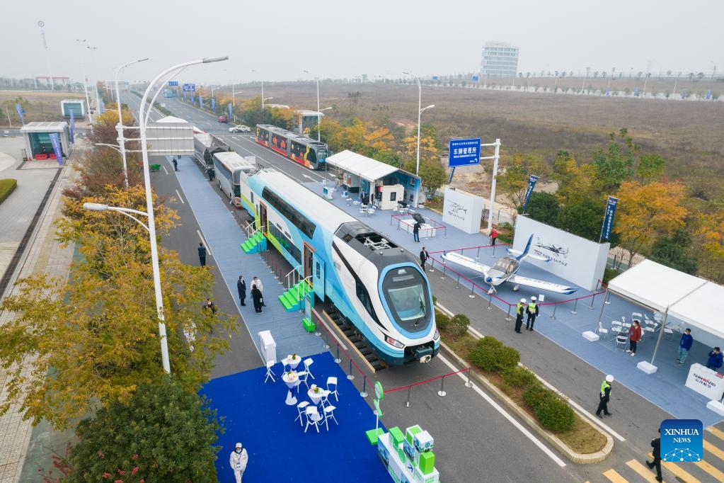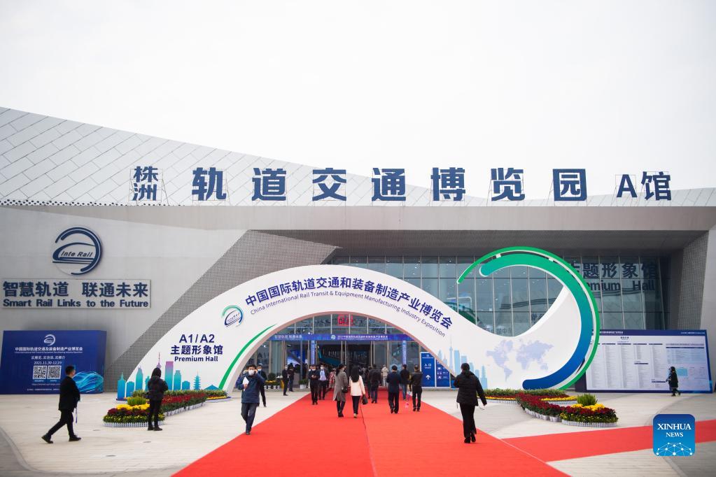 Photo taken on Dec. 8, 2021 shows the venue of China International Rail Transit and Equipment Manufacturing Industry Exposition in Zhuzhou, central China's Hunan Province. The expo kicked off here on Wednesday. (Xinhua/Chen Sihan)