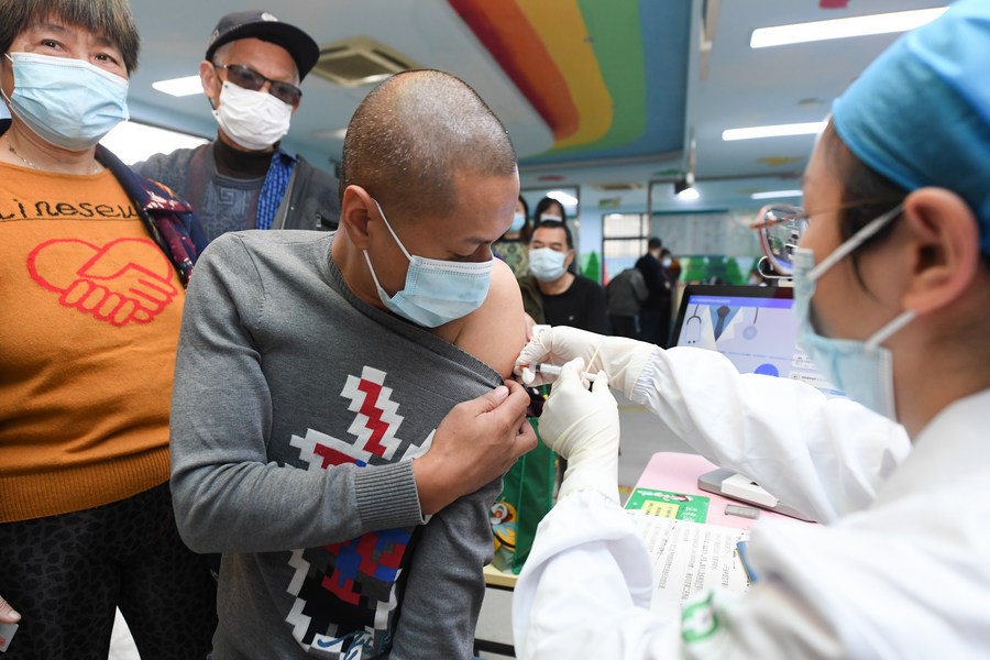 A resident gets a booster shot of the COVID-19 vaccine at a community medical service center in east China's Zhejiang Province, Oct. 27, 2021. (Xinhua/Weng Xinyang)