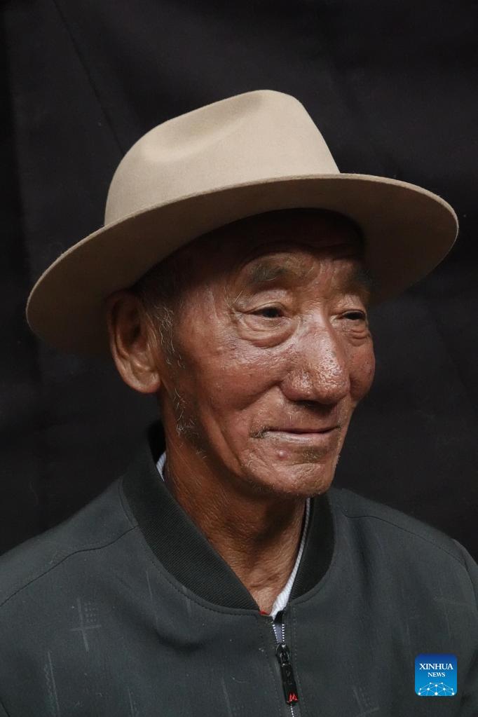 Shodolek poses for a portrait in Gaiba Village, Nedong District of Shannan, southwest China's Tibet Autonomous Region, June 23, 2021. Born in 1946, Shodolek and his whole family were once serfs who had to do heavy works endlessly before the democratic reform in Tibet in 1959. "The serf owner gave us, a family of five, just a little expired tsamba for meals everyday," Shodolek recalled. At that time, serfs were always beaten by serf owners besides suffering starvation and cold. At the age of only 40, mother of Shodolek passed away due to the lack of medical care. After the democratic reform, great changes have taken place in the lives of Shodolek and the villagers. His family was allocated farmland, and Shodolek even later served as the secretary of the Communist Party of China (CPC) branch of his Village. Now, Shodolek has built a two-story building where four generations of his family live together. (Xinhua/Jin Yiqing)