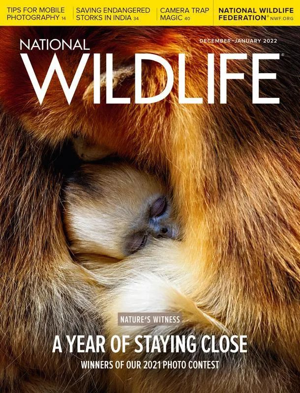 In addition, another image of Sichuan snub-nosed monkeys taken by Zhang titled Take Care (Baby Animals) won first place in the 2021 Photo Contest of National Wildlife, a magazine run by the National Wildlife Federation, the largest private and nonprofit conservation education and advocacy organization in the U.S. Monkey Cuddle was the cover of the December 2021–January 2022 issue of the magazine.