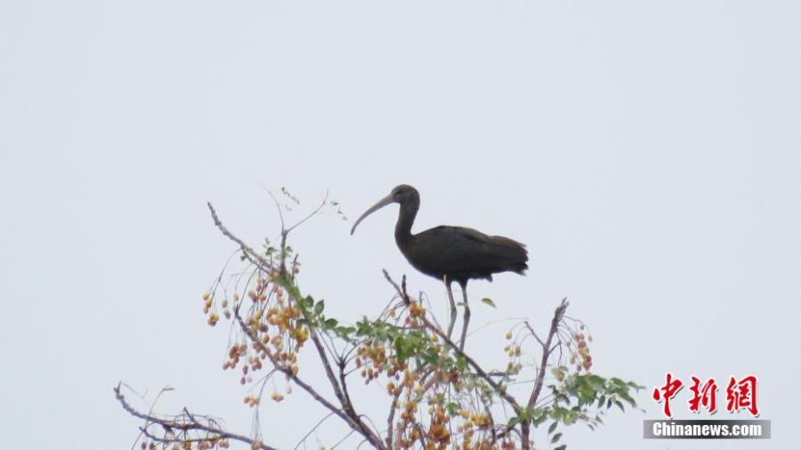 The undated photo shows a glossy ibis, under first-class state protection in China, are spotted at Danzhou Bay in south China's Hainan Province. (China News Service/Chen Zhengping)