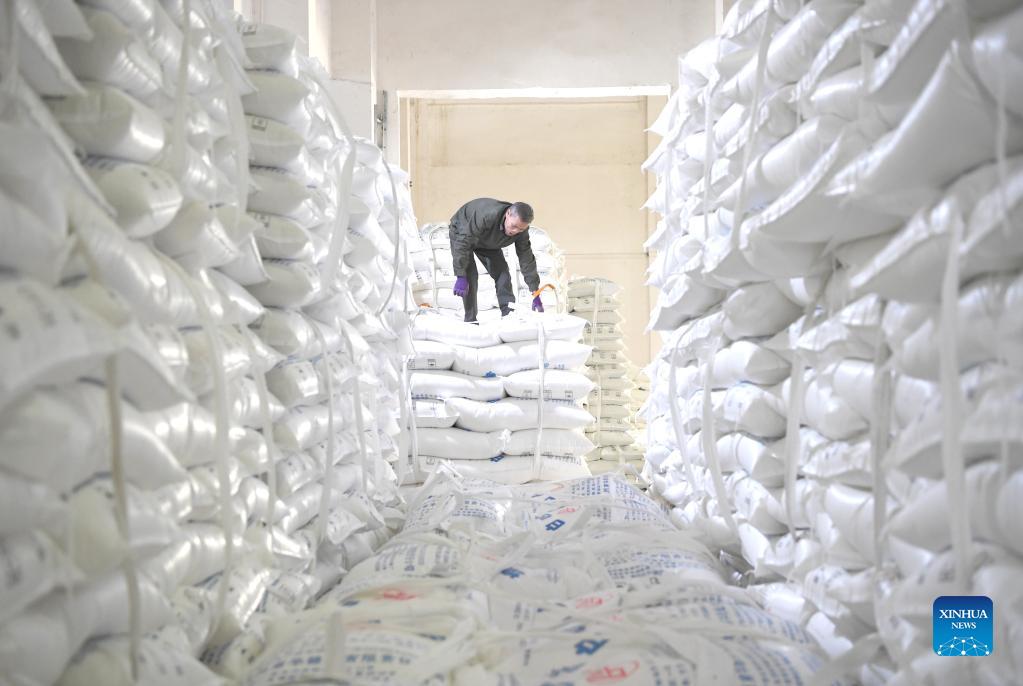A worker arranges sugar packs at a sugar factory in Longzhou County, Chongzuo City of south China's Guangxi Zhuang Autonomous Region, Dec. 15, 2021. According to sugar industry development office of Guangxi, 66 sugar factories, nearly 90 percent of the 74 sugar factories scheduled to open this season, have started to produce sugar as of Dec. 15. (Xinhua/Zhou Hua)
