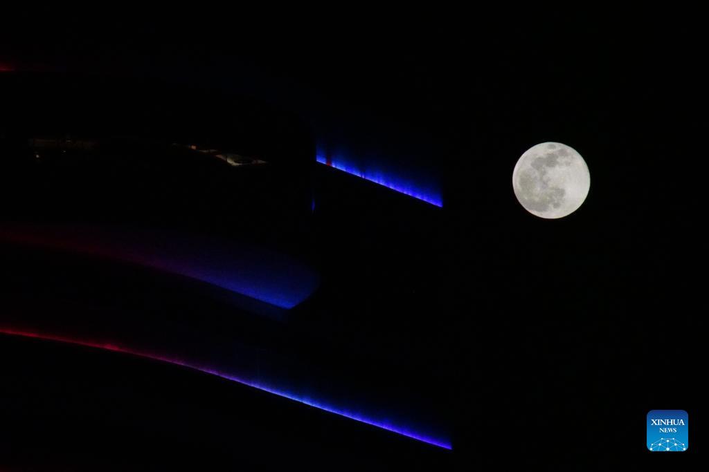 Photo taken on Dec. 19, 2021 shows the full moon in Ruian, east China's Zhejiang Province. The last full moon in the year of 2021 appeared on Sunday, the sixteenth day on the eleventh month of the Chinese lunar calendar. (Photo by Zhuang Yingchang/Xinhua)