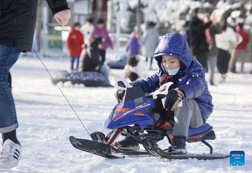 An ice and snow festival was held in the World Park in Beijing, capital of China, Dec. 19, 2021. A large number of Beijing citizens attended the event in the park. The event featured carnival-like activities to celebrate the upcoming Winter Olympics in Beijing. Participants could experience more than 20 different winter sports or activities. Ice and snow themed performances were also featured. (Xinhua/Li Xin)