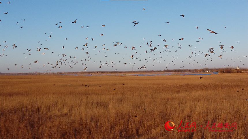 Spectacular gathering of birds seen at Baiyangdian Lake in Xiongan New Area