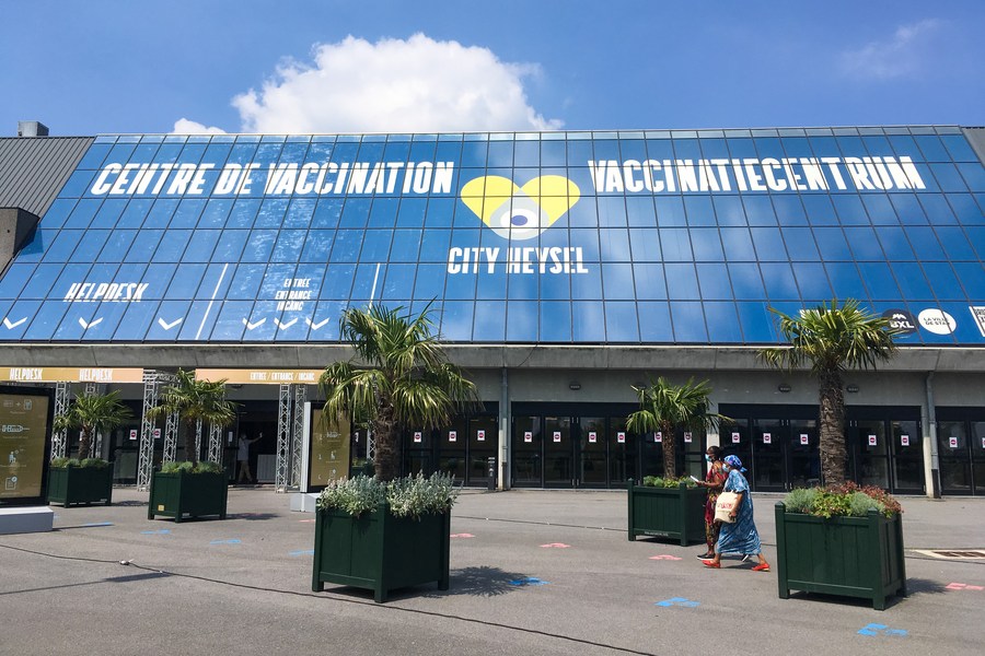 People enter a vaccination center in Brussels, Belgium, June 8, 2021. (Xinhua/Zheng Huansong)