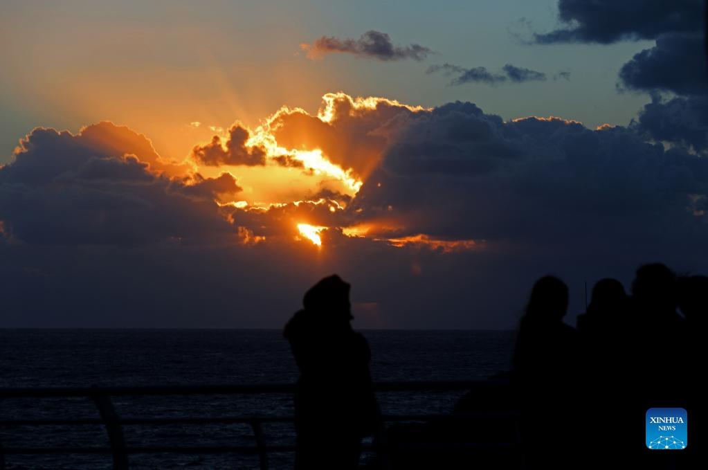 Photo taken on Dec. 21, 2021 shows the sunset scenery in Beirut, Lebanon. (Xinhua/Bilal Jawich)
