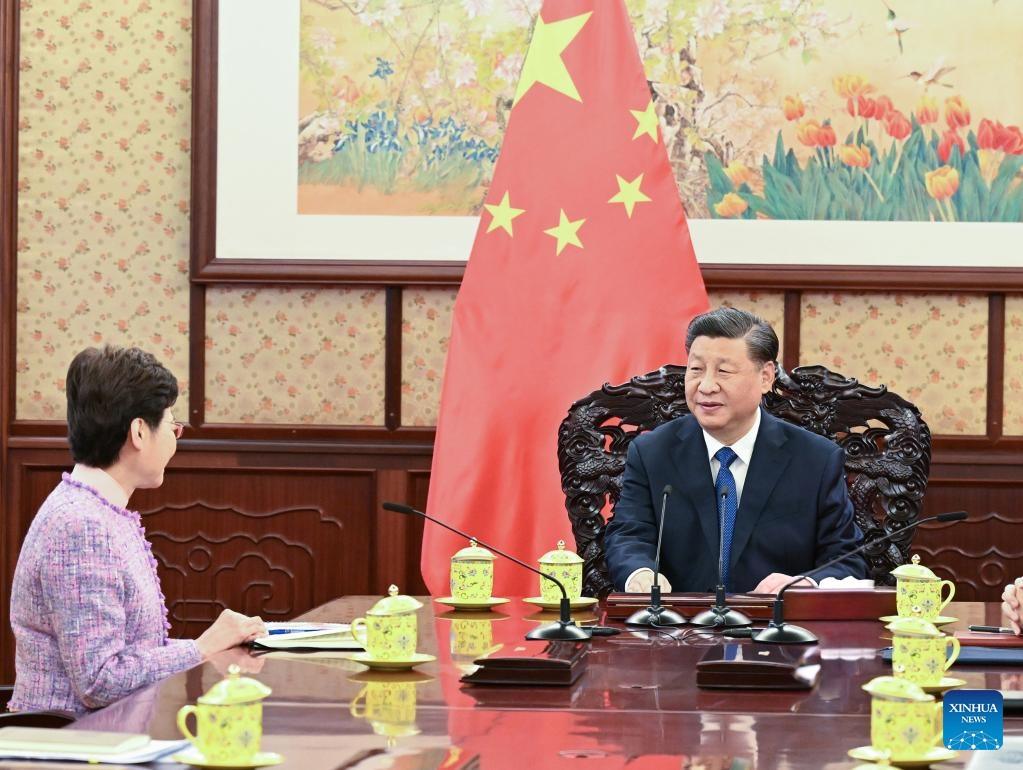 President Xi Jinping meets with Chief Executive of the Hong Kong Special Administrative Region (HKSAR) Carrie Lam, who is on a duty visit to Beijing, capital of China, Dec. 22, 2021. (Xinhua/Li Xueren)