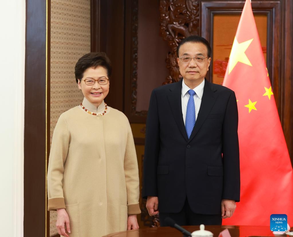 BEIJING, Dec. 22 (Xinhua) -- Premier Li Keqiang on Wednesday met with Chief Executive of the Hong Kong Special Administrative Region (HKSAR) Carrie Lam, who is on a duty visit to Beijing.