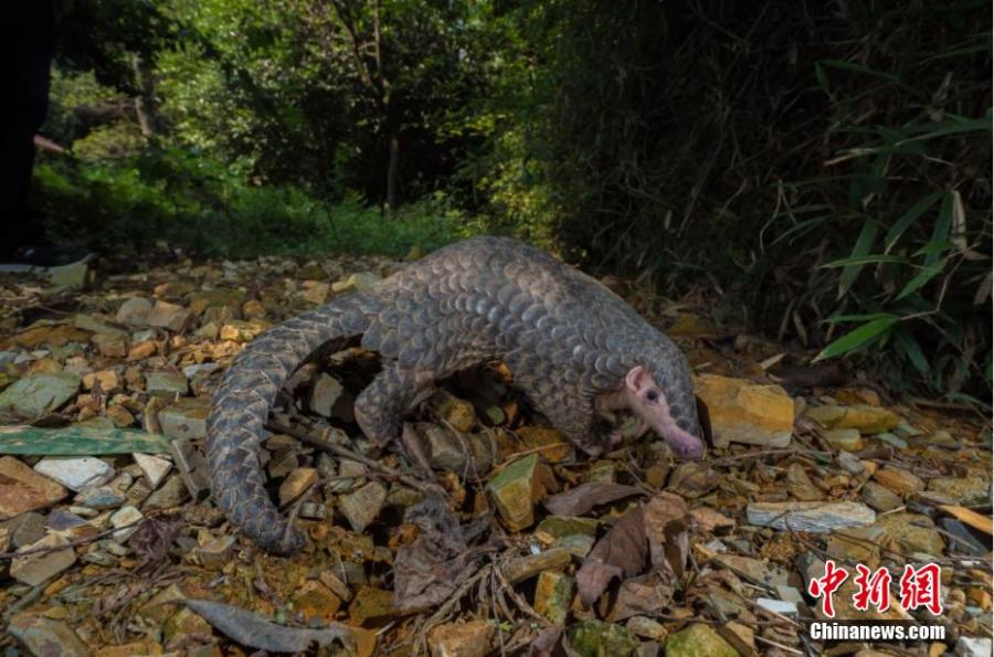 Photo shows a pangolin listed as species under top-class state protection in China. (Photo provided by Wuyanling National Nature Reserve management center)