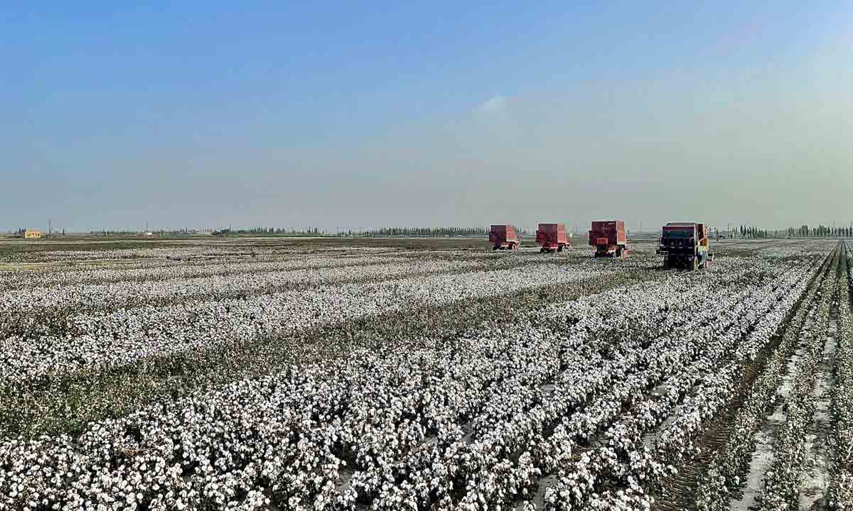 A domestically-developed automatic cotton-picking machine fleet at work in Shaya county, Aksu Region, Northwest China’s Xinjiang Uygur autonomous region. Photo: Lin Luwen/GT