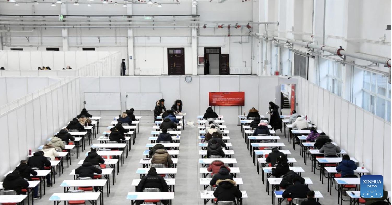 Photo taken on Dec. 25, 2021 shows the exam site for postgraduate entrance exams in Beijing Institute of Technology in Beijing, capital of China. China's 2022 national entrance exams for postgraduate studies kicked off on Saturday. (Xinhua/Ren Chao)