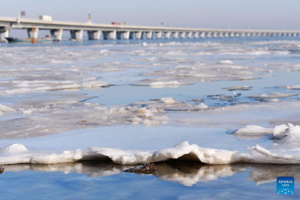 View of ice floes in coastal waters in Qingdao, E China (2)