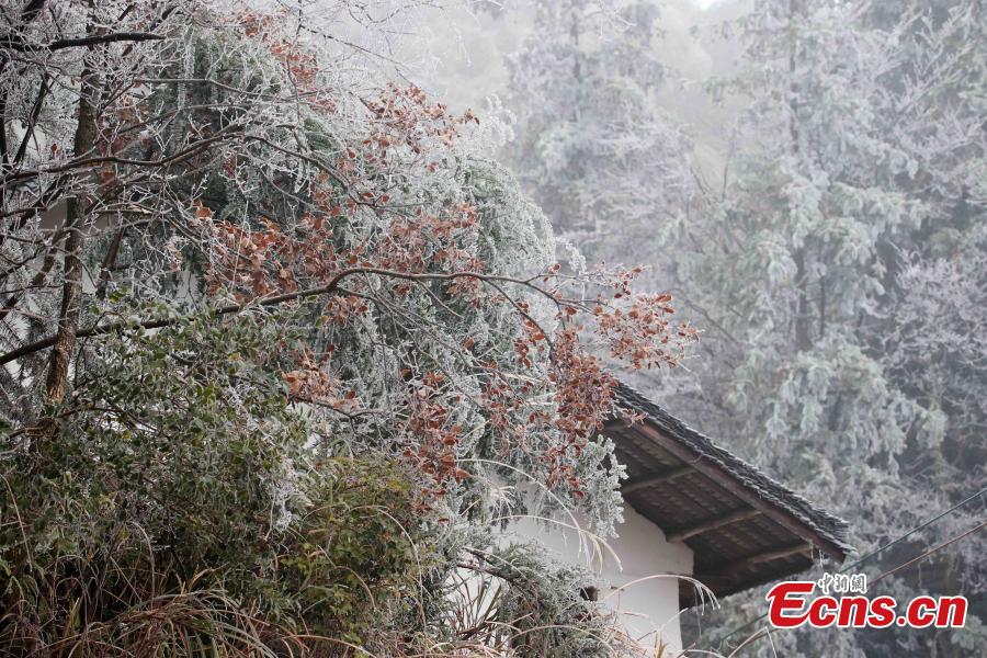Icicles hang down from plants in a village of Rong'an County, Liuzhou, south China's Guangxi Zhuang Autonomous Region. (China News Service/Tan kaixing)