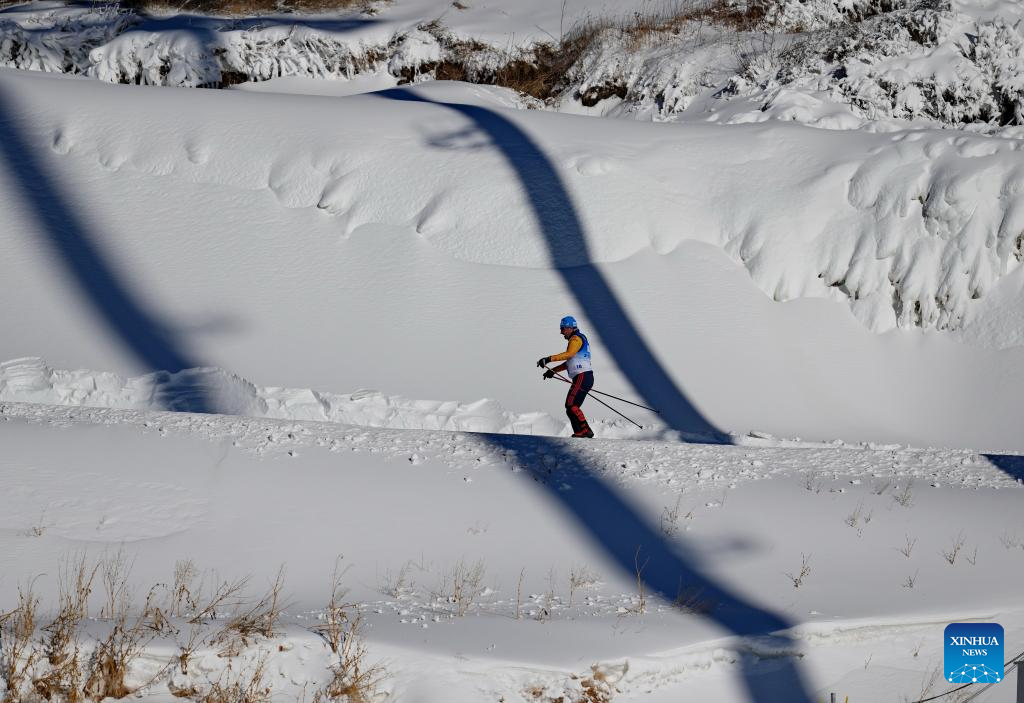 A participant conducts test on the track during the biathlon international training week at the National Biathlon Center in Zhangjiakou competition zone of the Beijing 2022 Olympic and Paralympic Winter Games, in Zhangjiakou, north China's Hebei Province, Dec. 28, 2021. (Xinhua/Mu Yu)