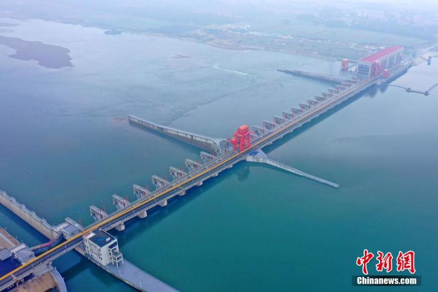 Aerial photo taken on Dec 28, 2021 shows Jinggangshan Navigation and Power Hub Project on the Ganjiang River in east China's Jiangxi province. (China News Service/Deng Heping)