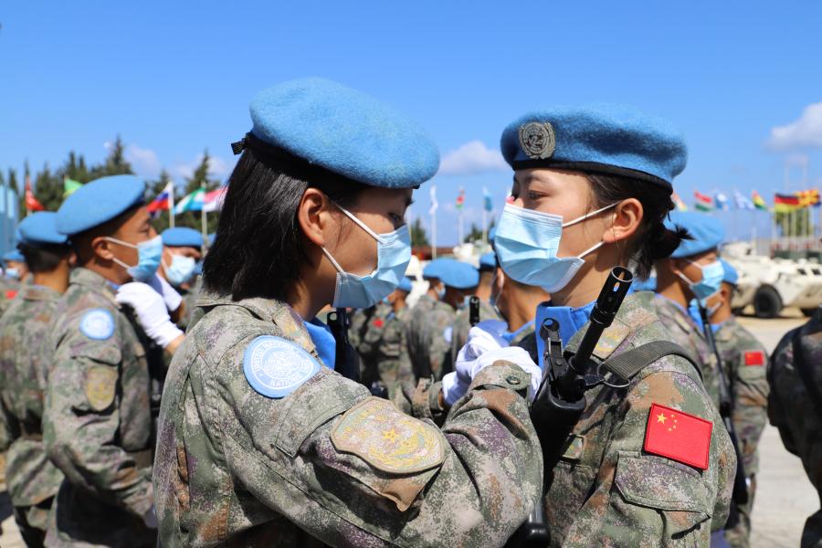 Soldiers on the Chinese contingent to the United Nations Interim Force in Lebanon (UNIFIL) are awarded the United Nations Peacekeeping Medal during a medal parade ceremony in southern Lebanon, June 16, 2021. [Photo/Xinhua]